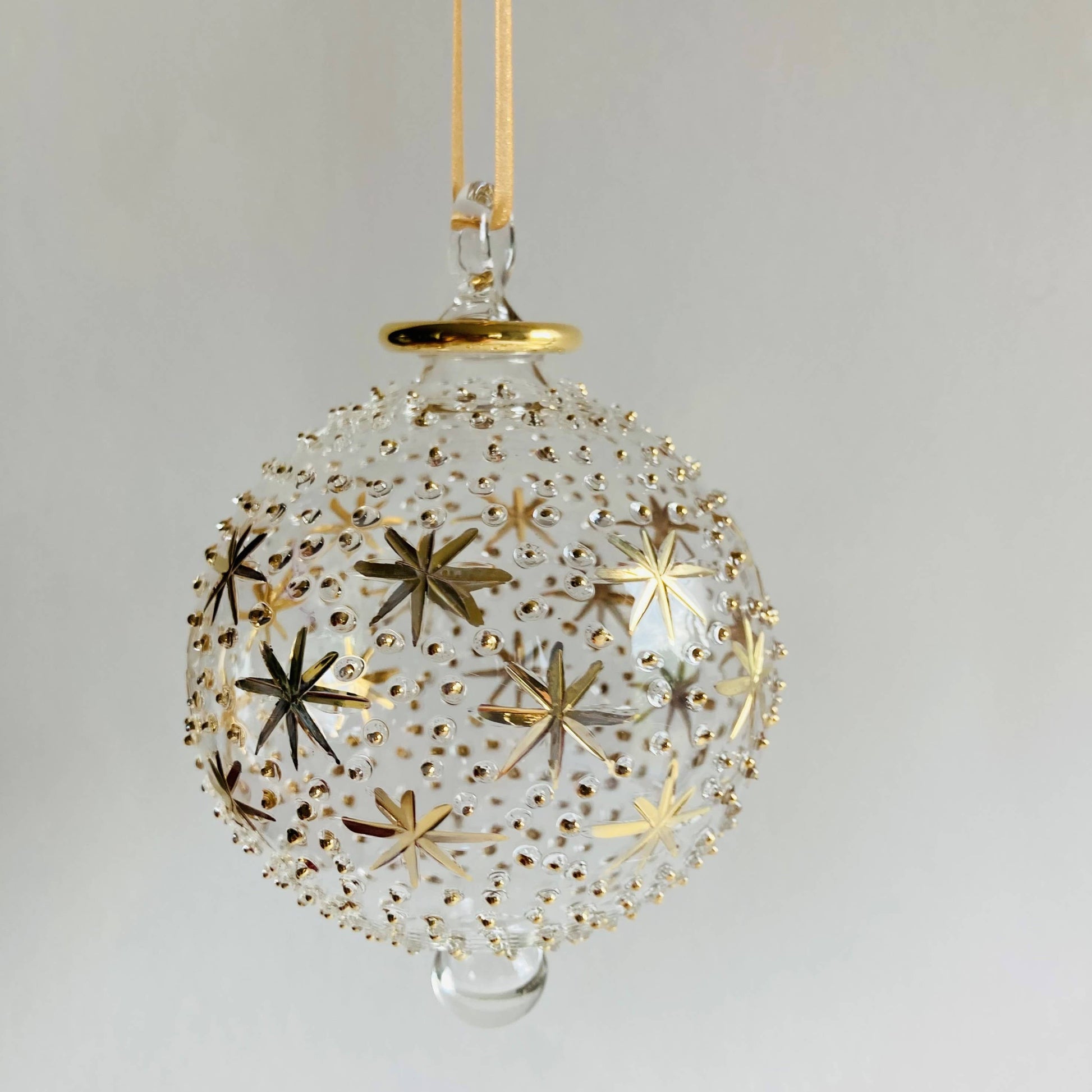 Blown Glass Ornament - Gold Stars & Dots: 2"