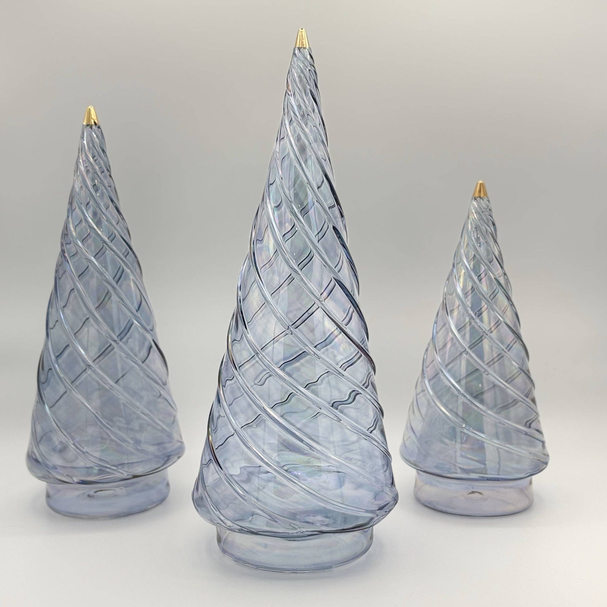 Blown Glass Tabletop Christmas Tree - Cone Swirl Light Blue: Small